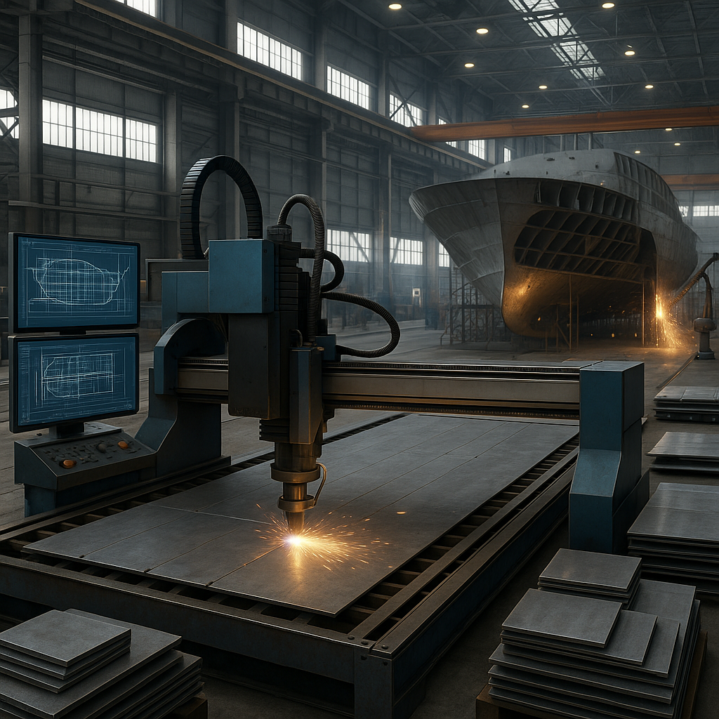 CNC (Computer Numerical Control) machines are now a common sight in modern shipyards. They transform design blueprints into physical components with unmatched precision. In hull construction, CNC machines are used to cut steel plates, drill connection points, and bevel edges—all based on CAD/CAM data. The result? Repeatable accuracy, faster workflows, and minimal material waste.